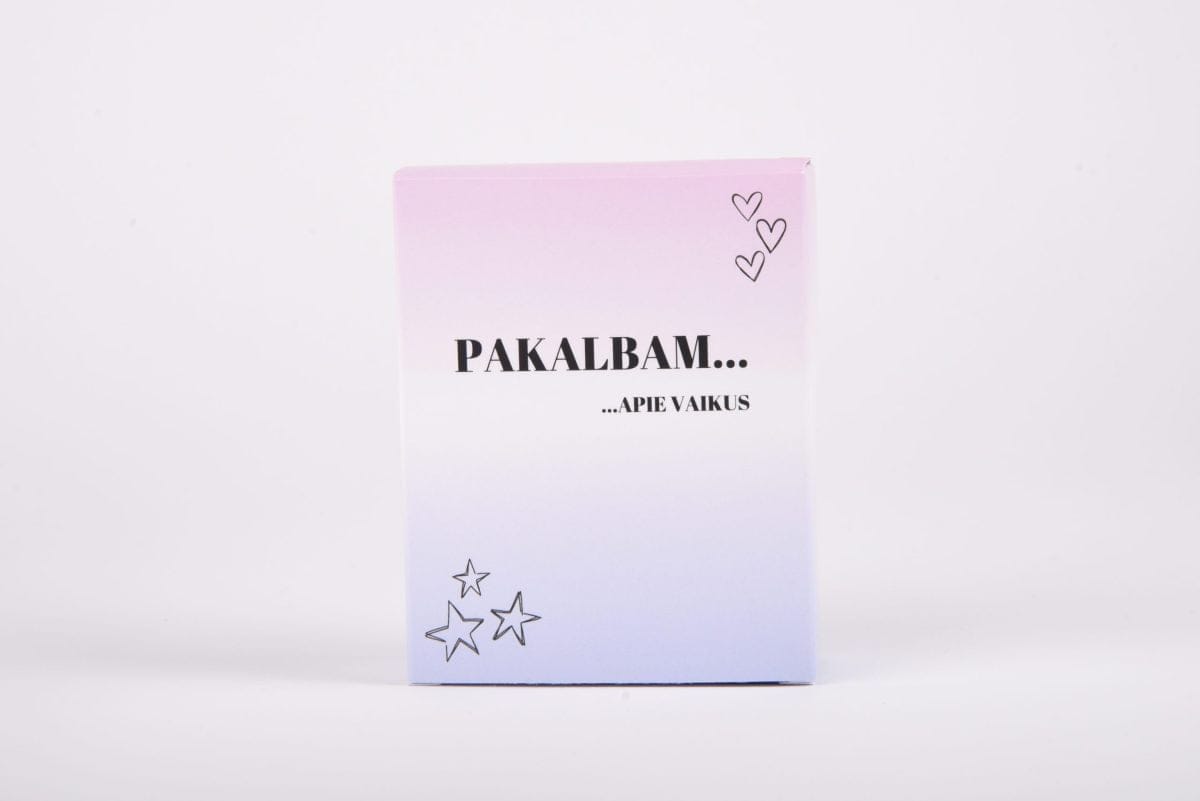 Pokalbių žaidimas „Pakalbam apie vaikus“ skirtas poroms, kurios dar neturi vaikų, tačiau mintys apie juos kartais aplanko. 90 žaidimo klausimų sukurti taip, kad padėtų suprasti partnerį, išreikšti norus bei prioritetus ar įsivaizduoti ir kartu modeliuoti tam tikras situacijas. Kitaip tariant, žaidimas bus ta priežastis, dėl kurios kartu su partneriu aiškiai ir atvirai pakalbėsite apie vaikus.